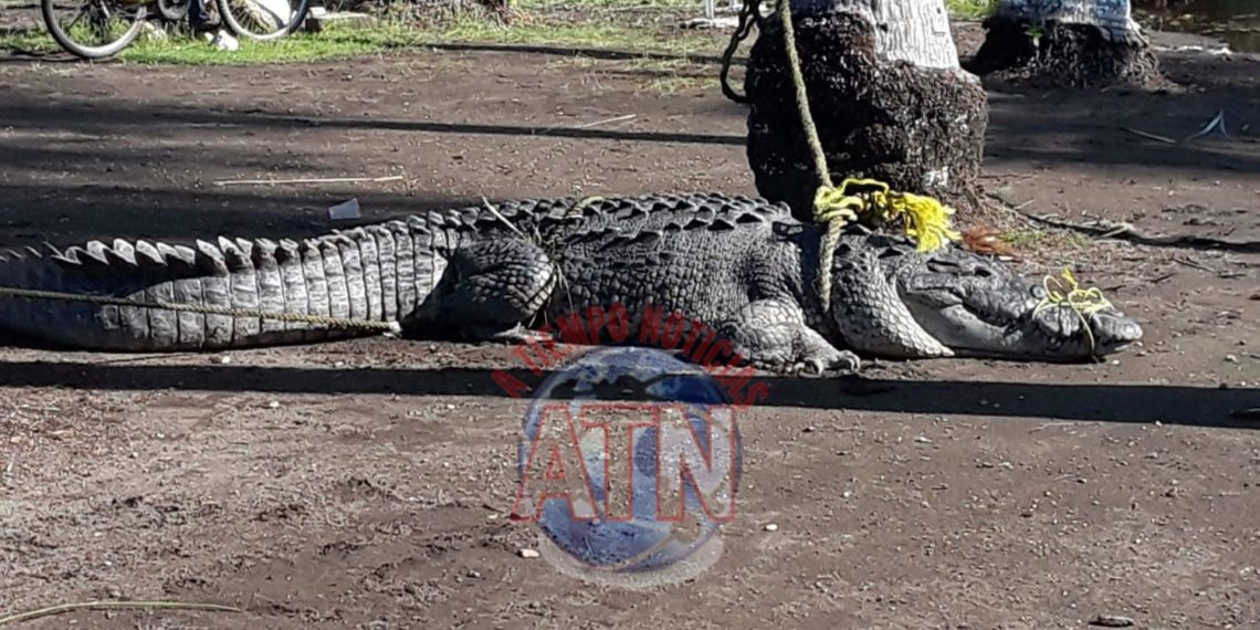 Como las autoridades de SEMARNAT tardaron en llegar, enviaron al Biólogo Edgar, quien es el especialista en el rescate de Cocodrilo, Caimanes y reptiles, lamentablemente ya habían matado al cocodrilo.