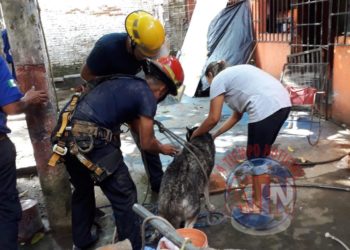 Canino cae a un pozo y fue rescatado por bomberos