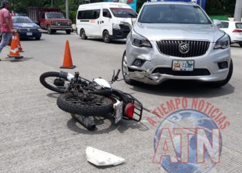 TAPACHULA, CHIAPAS. - Una persona que se desplazaba a bordo de una motocicleta, resultó con lesiones al derrapar sobre la...