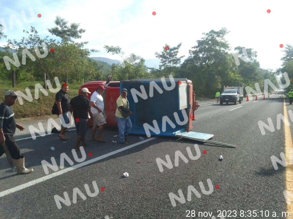 El exceso de velocidad y la falta de precaución, aunado a que se presume se le ponche un neumático por la carga que llevaba en la camioneta, ocasionó que terminara volcado.