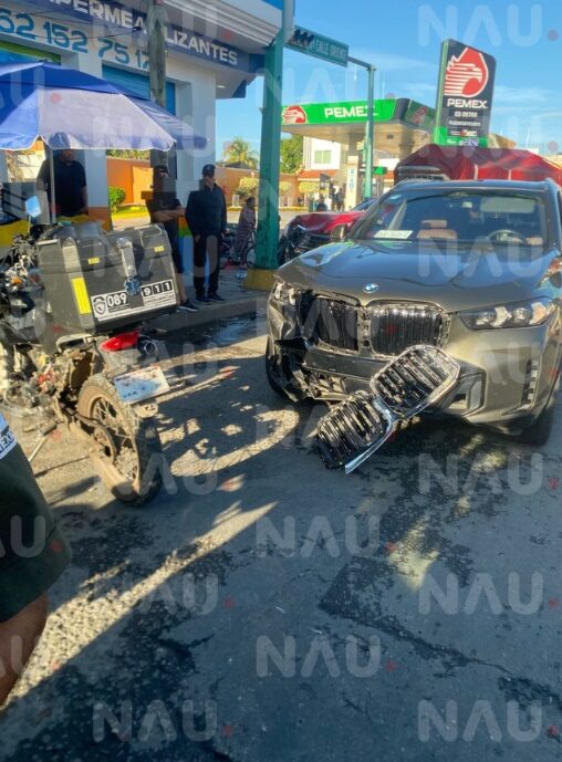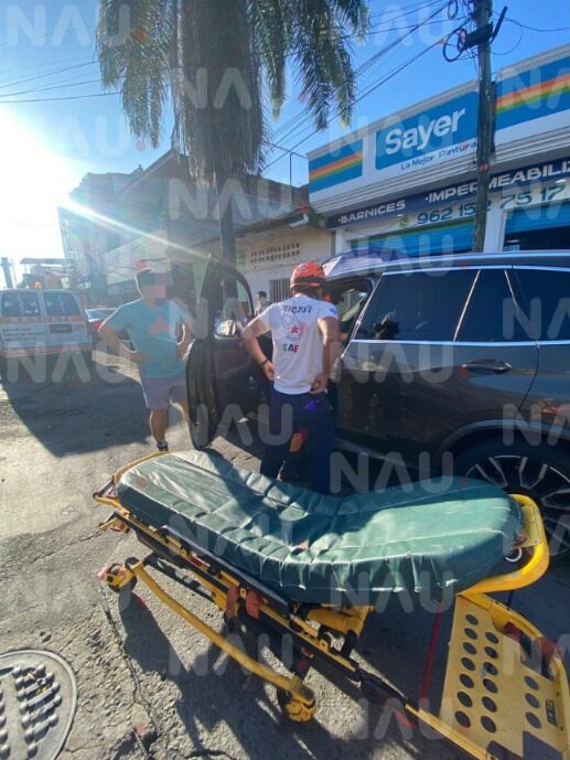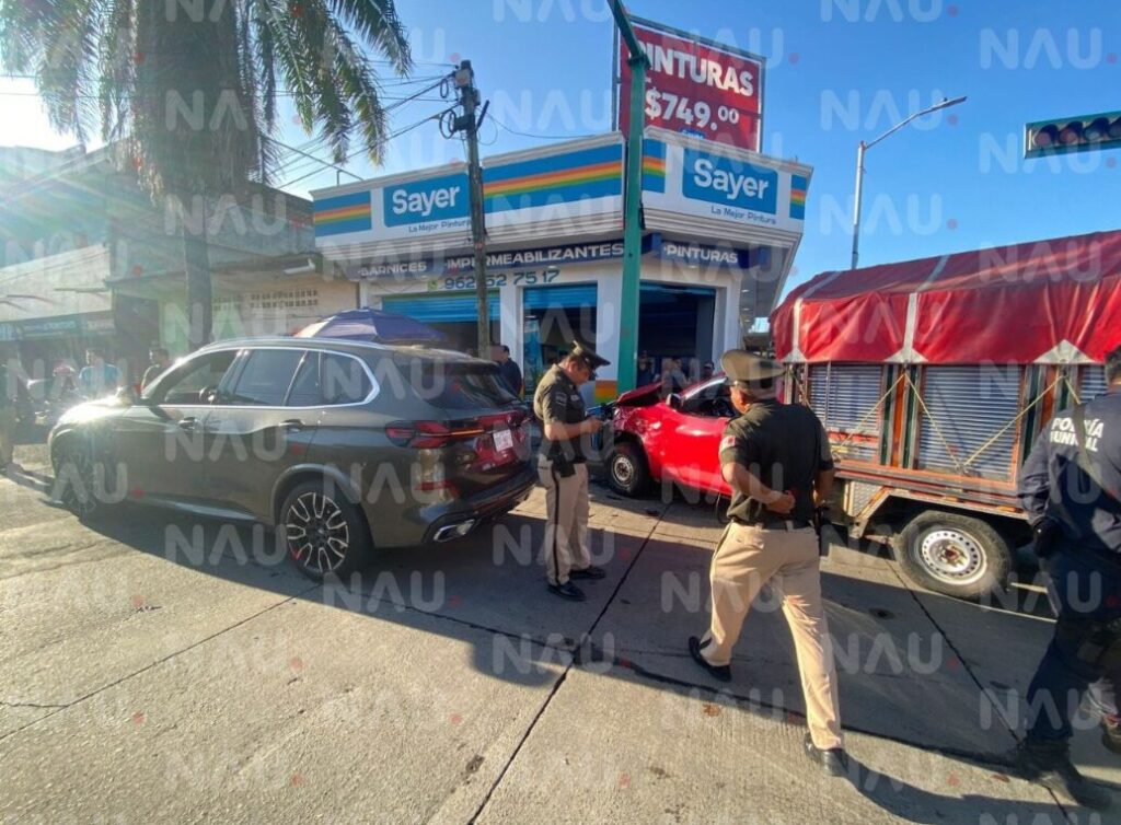 De acuerdo con testigos, el vehículo de color negro, marca BMW, circulaba sobre la Séptima Sur con el semáforo en verde, cuando fue impactado por un automóvil marca Nissan, cuyo conductor presuntamente no respetó la luz roja del semáforo, provocando el fuerte choque.