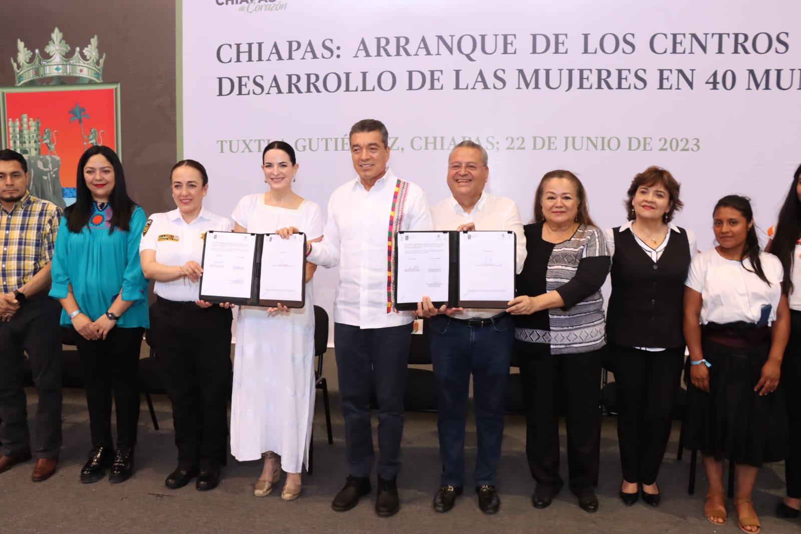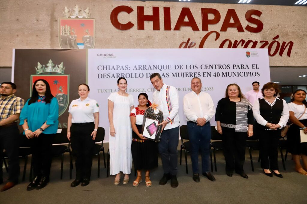 Durante el arranque de los Centros para el Desarrollo de las Mujeres en 40 municipios del estado, el gobernador Rutilio Escandón Cadenas destacó que en Chiapas se hace causa común en la construcción de una sociedad igualitaria, equitativa e incluyente, donde no haya discriminación y se garantice el bienestar, la seguridad, el respeto de los derechos humanos y el desarrollo integral de las niñas y mujeres.