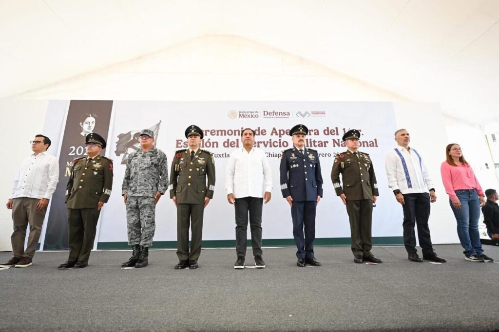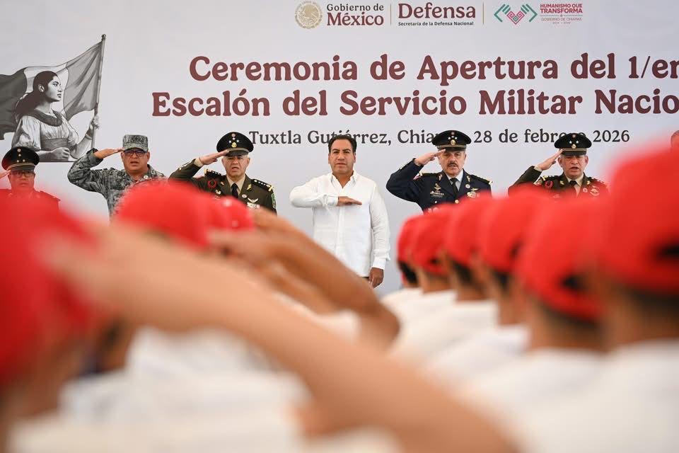 El gobernador Eduardo Ramírez Aguilar, junto a autoridades militares y civiles, atestiguó la ceremonia de apertura del Primer Escalón 2026 del Servicio Militar Nacional (SMN), realizada en el Parque Bicentenario de Tuxtla Gutiérrez.