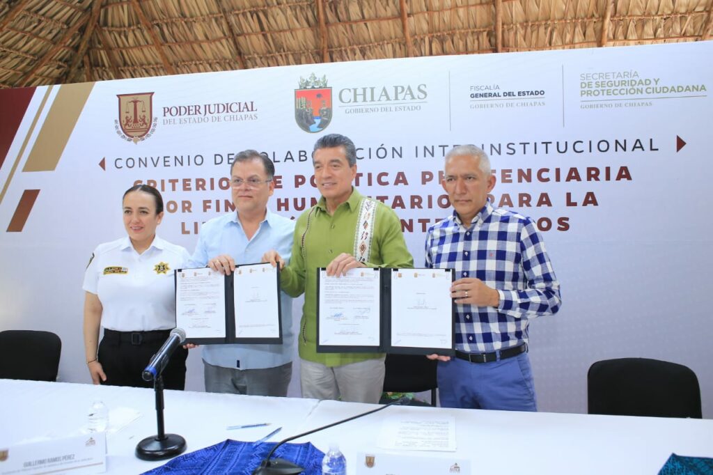 A su vez, el presidente del Poder Judicial del Estado, Guillermo Ramos Pérez, sostuvo que Chiapas será uno de los primeros estados que suma esfuerzos de colaboración en la implementación de esta política. “La liberación humanitaria es un beneficio que otorga el Estado y brinda una esperanza; con estas acciones Chiapas está a la vanguardia en la preliberación por criterios de política penitenciaria”.