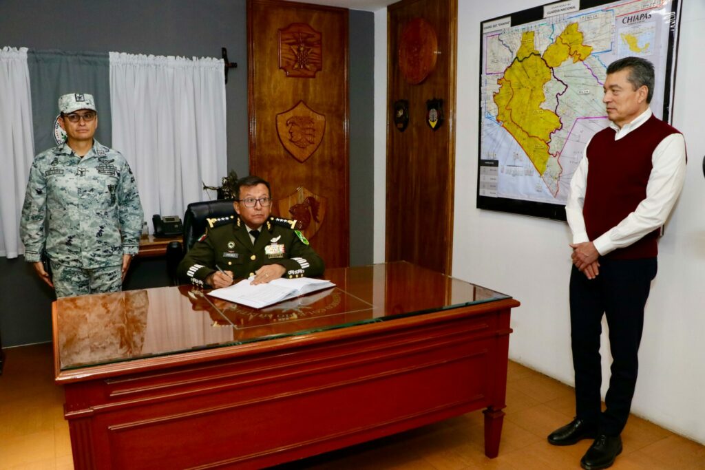 Tras atestiguar la toma de protesta, realizada por el comandante de la VII Región Militar, José Joaquín Jiménez Cueto, en las instalaciones de la Guardia Nacional, en Chiapa de Corzo, el mandatario recalcó el compromiso de su gobierno de seguir trabajando en unidad y con responsabilidad en conjunto con las Fuerzas Armadas, para mantener la seguridad y salvaguardar la integridad de las familias chiapanecas.