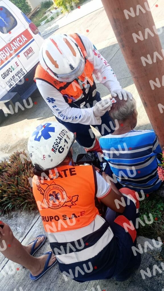 TAPACHULA, CHIAPAS. Una persona de 74 años de edad que se resbaló y cayó de su propia altura, fue atendido por paramédicos de servicios auxiliares de emergencia (SAE), la mañana de este martes.