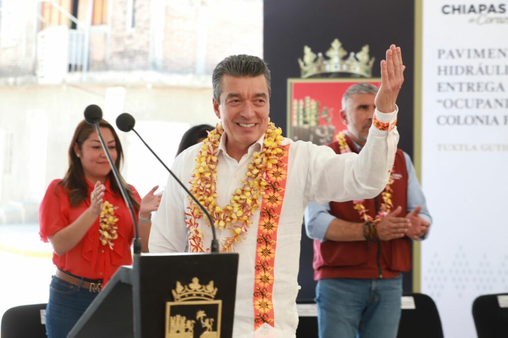 Al inaugurar la pavimentación con concreto hidráulico y mejoramiento integral de la calle Pomarrosa de la colonia Potinaspak de Tuxtla Gutiérrez, el gobernador Rutilio Escandón Cadenas destacó que, ahora más que nunca, los recursos se cuidan y destinan en este tipo de obras prioritarias y de alto impacto social, que contribuyen al mejoramiento de la imagen urbana, la movilidad, los servicios públicos, la seguridad y el bienestar de la población.