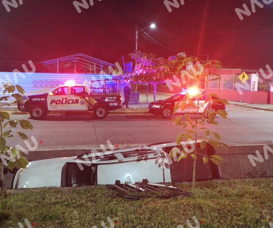 De acuerdo con los primeros reportes, el percance ocurrió alrededor de las 23:30 horas, cuando presuntamente el conductor perdió el control de la unidad, lo que provocó que avanzara fuera del carril de circulación hasta caer prácticamente al interior del canal pluvial.