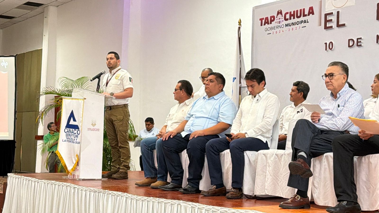 El acto tuvo lugar en un conocido hotel de la ciudad y contó con la presencia del licenciado Juan Manuel Sardai, anfitrión y figura destacada del evento; Jorge Zúñiga, presidente local de CANACO Tapachula; representantes de la Profeco, Secretaría de Economía y del Trabajo, Instituto Nacional de Migración (INM), y consulados de México y Guatemala, así como autoridades estatales y municipales.