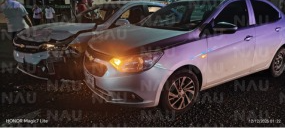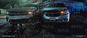 Tapachula, Chiapas.— Un aparatoso accidente de tránsito se registró alrededor de las 00:35 horas de este viernes sobre la 5ª Avenida Norte, esquina con 17ª Calle Oriente, en pleno centro de la ciudad, donde dos vehículos particulares resultaron con daños en su parte frontal.