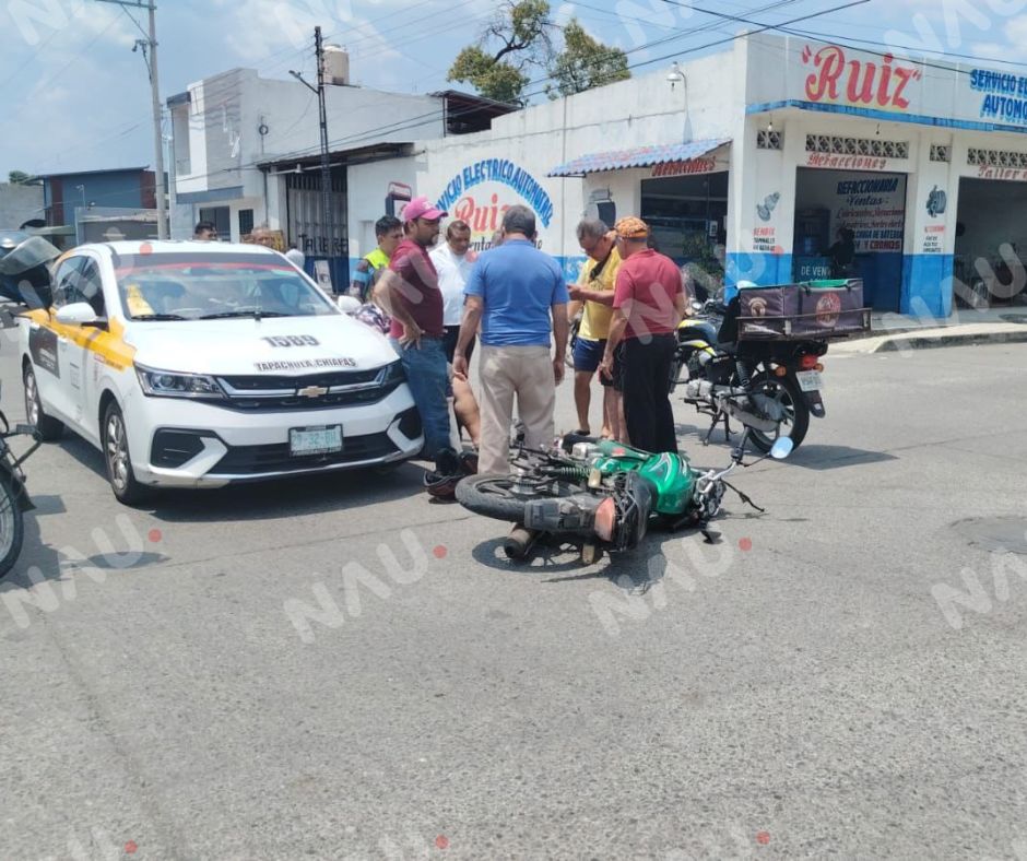 CHOQUE ENTRE MOTOCICLETA Y TAXI DEJA DOS LESIONADOS EN TAPACHULA