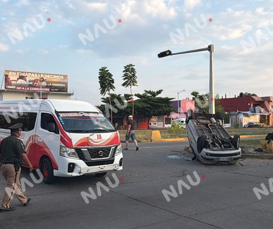 El percance se registró alrededor de las 06:30 horas, en un cruce regulado por semáforo. De acuerdo con la información obtenida, un automóvil compacto tipo Atos, de color gris, circulaba de poniente a oriente sobre la calle Lirios, mientras que una combi del servicio colectivo de la empresa Ómnibus de Tapachula, con número económico 18 y ruta Ciudad Hidalgo–Tapachula, transitaba de sur a norte sobre el Par Vial.