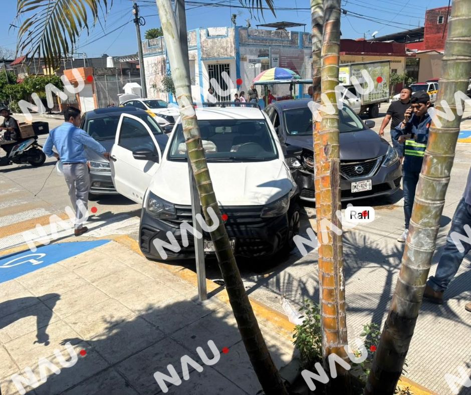 Choque entre tres vehículos en cruce del centro de Tapachula
