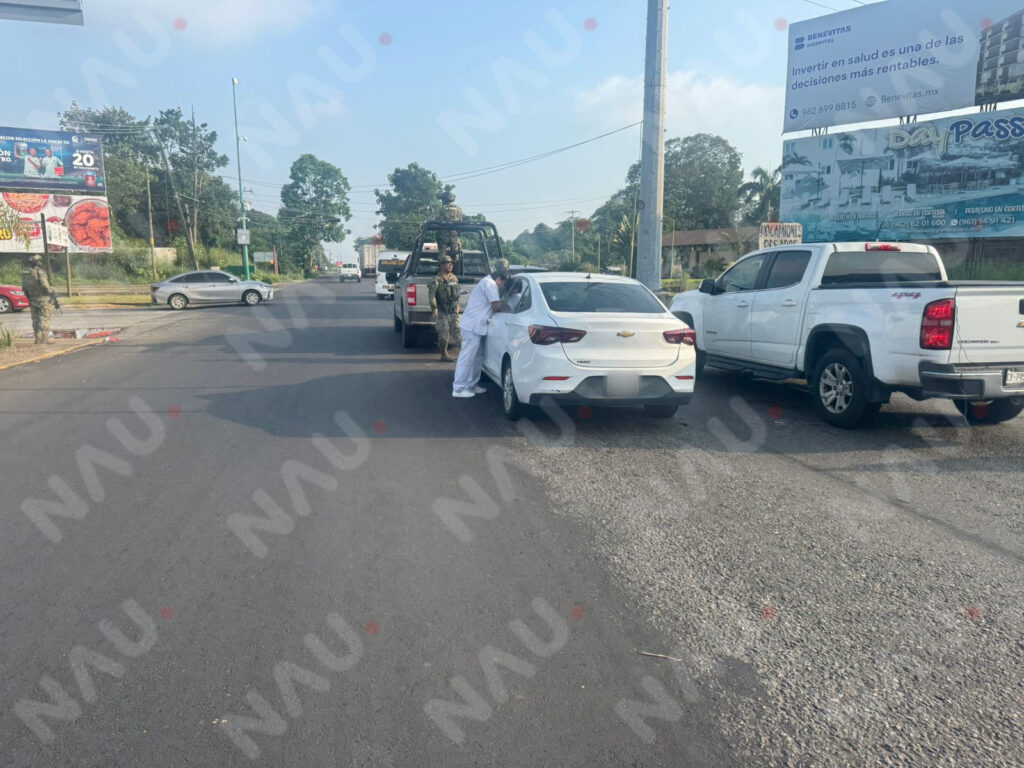 El hecho ocurrió alrededor de las 16:00 horas, a la altura del tramo comprendido entre el puente del Sam’s Club y el par vial de la Séptima Avenida Sur. De acuerdo con los primeros reportes, el conductor de un automóvil blanco no habría guardado la distancia prudente, lo que provocó que terminara impactándose en la parte trasera de la unidad militar.