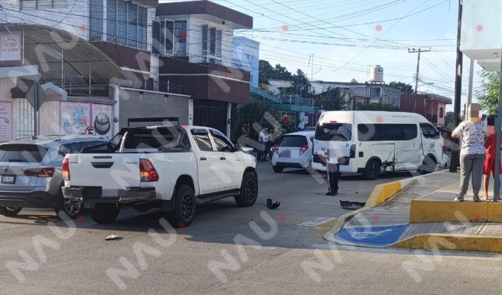 Tapachula, Chiapas; jueves 13 de noviembre de 2025. — Un aparatoso accidente vial ocurrido la mañana de este jueves en el cruce de la 15ª Calle Oriente y 11ª Avenida Norte de Tapachula dejó como saldo cuatro personas lesionadas, entre ellas un menor de edad, así como cuantiosos daños materiales en tres vehículos involucrados.