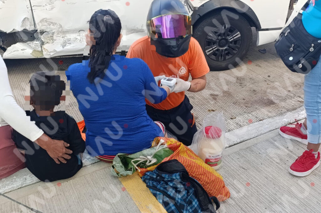 Elementos del Grupo SAE acudieron de inmediato al lugar y brindaron atención prehospitalaria a los ocupantes. Una mujer resultó con posible fractura en uno de sus brazos, por lo que fue trasladada de emergencia a un hospital cercano. En total, cuatro personas fueron atendidas por lesiones leves, incluyendo a un menor que viajaba en una de las unidades.
