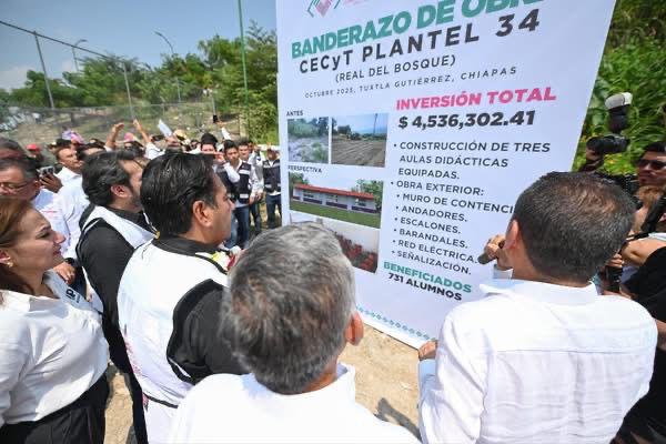 Como muestra del compromiso del Gobierno de la Nueva ERA con la educación y la juventud chiapaneca, el gobernador Eduardo Ramírez Aguilar inauguró nueva infraestructura en el Colegio Nacional de Educación Profesional Técnica (Conalep) Plantel 312 y dio el banderazo de inicio a obras en el Colegio de Estudios Científicos y Tecnológicos (Cecyt) Plantel 34 Real del Bosque, ambos en Tuxtla Gutiérrez.