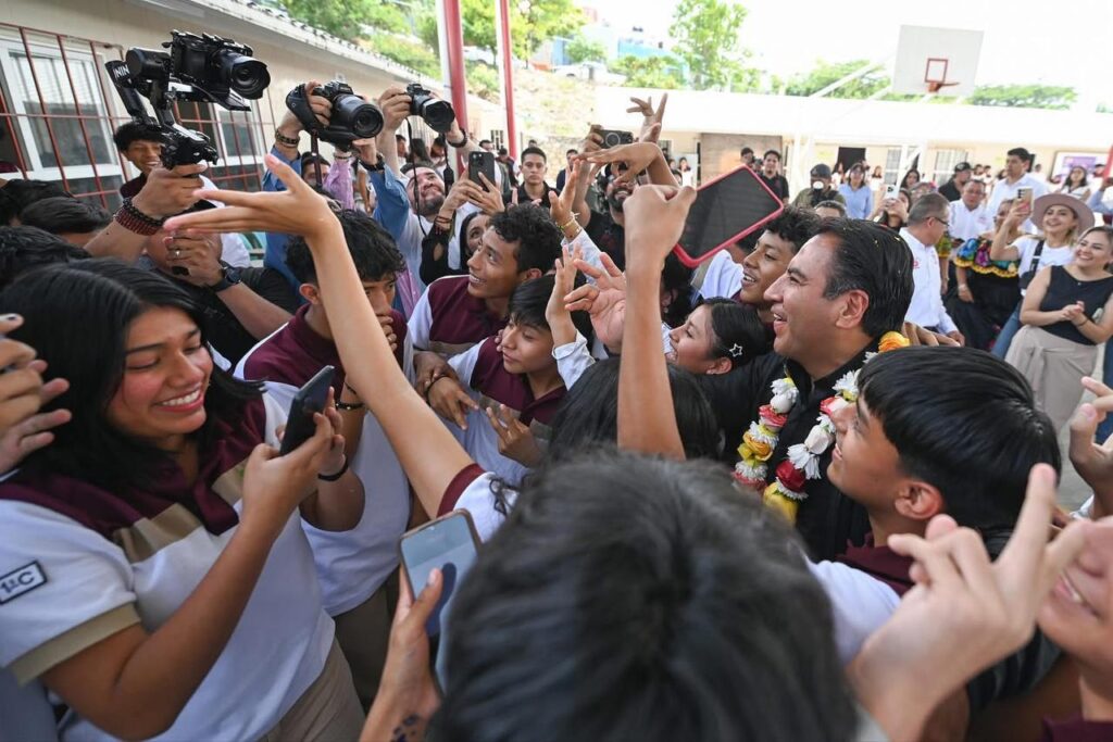 Acompañado de su esposa, Sofía Espinoza Abarca, y su hija, Yazmín Ramírez Espinoza, el mandatario recorrió ambos planteles, donde fue recibido con muestras de cariño por parte de la comunidad escolar, que también le expresó felicitaciones con motivo de su cumpleaños. En este marco, alumnas y alumnos del programa de alfabetización Chiapas Puede le entregaron un reconocimiento elaborado por ellos mismos, en el que plasmaron sus nombres y mensajes de buenos deseos.