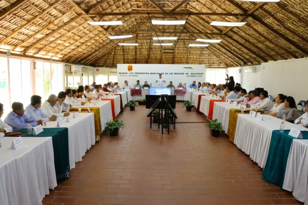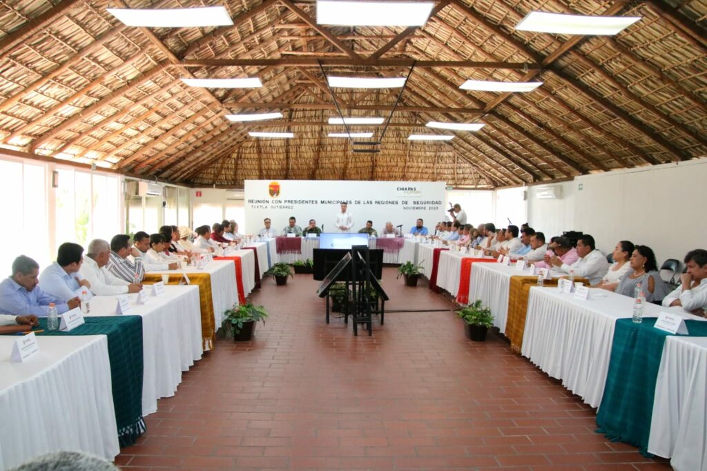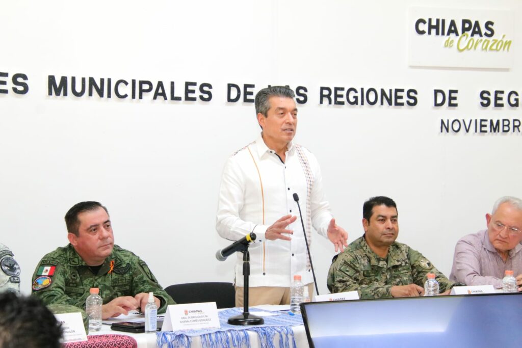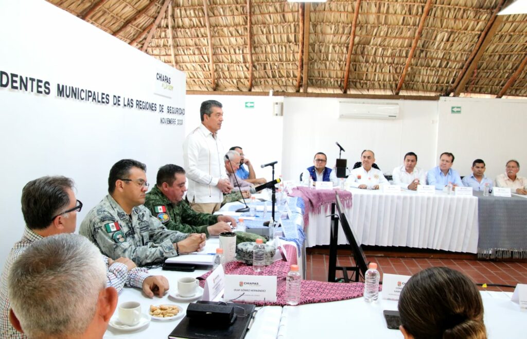 Acompañado de la secretaria de Seguridad y Protección Ciudadana, Gabriela Zepeda Soto, el mandatario precisó que la seguridad es uno de los rubros prioritarios de su gobierno, por lo que es de suma importancia que los representantes de cada ayuntamiento estén pendientes de la situación de sus municipios y no dejar de participar en las Mesas Regionales de Seguridad, toda vez que, desde este espacio, se fortalecen las acciones conjuntas a favor de la tranquilidad, la paz y la seguridad en Chiapas.