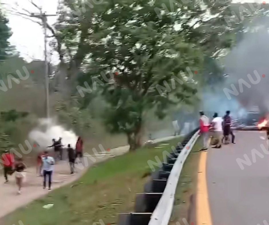 De manera simultánea, otro punto de bloqueo ubicado en el tramo Huixtla–Escuintla, a la altura del crucero de Zitihualt, también fue desalojado. En ese sitio se reportaron personas detenidas, así como la quema de al menos dos motocicletas durante los disturbios.