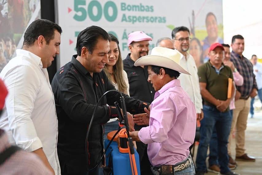 El secretario de Agricultura, Ganadería y Pesca, Marco Antonio Barba Arrocha, informó que la entrega de mil bombas aspersoras y 600 árboles frutales en Solosuchiapa e Ixtapangajoya fortalecerá la producción agropecuaria y la reforestación. Subrayó que el campo es prioridad para el gobernador y recordó que, con la Nueva ERA, las y los productores cuentan con un seguro ganadero que protege el 100 por ciento de su patrimonio ante desastres naturales. Añadió que se abrirán nuevas rutas de recolección de Liconsa, con un precio preferencial de 11.50 pesos por litro de leche, en beneficio de la región Norte.