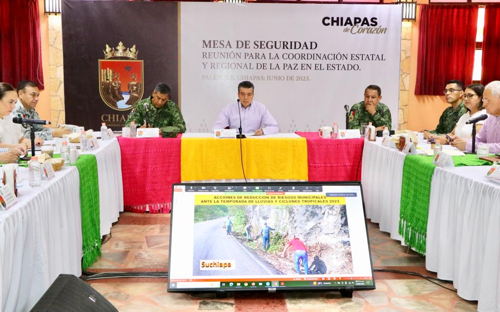 Al encabezar la mesa de Coordinación Estatal para la Construcción de la Paz y la Seguridad, realizada en el municipio de Palenque, el gobernador Rutilio Escandón Cadenas informó que, de acuerdo con el pronóstico meteorológico, continuarán las lluvias en gran parte del territorio estatal, sobre todo en los municipios de las regiones Soconusco, Istmo-Costa, Sierra Mariscal, Metropolitana, Frailesca y Mezcalapa, por lo que insistió en el llamado a extremar precauciones.