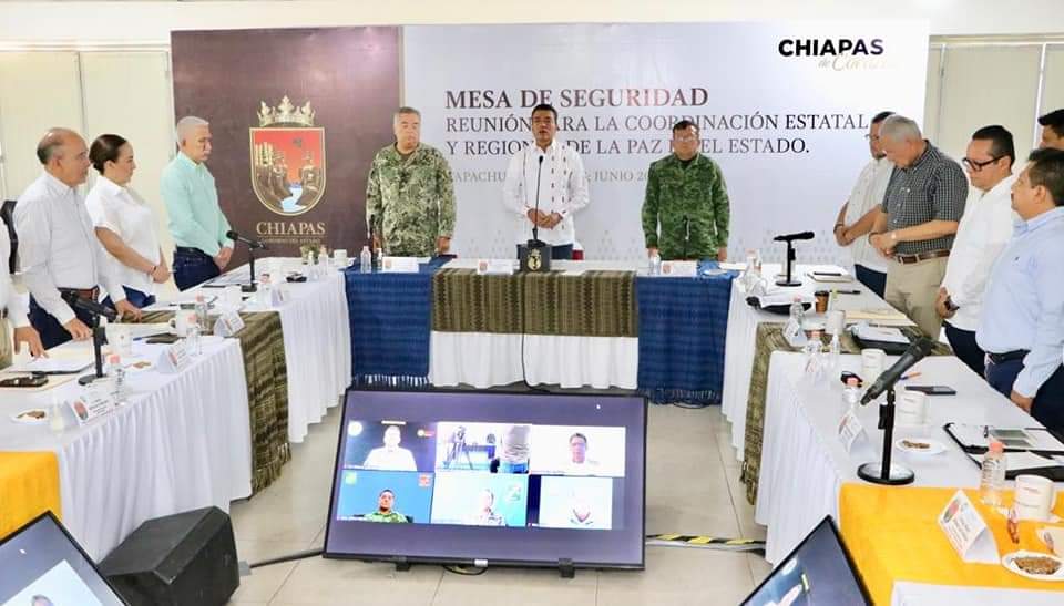 Asimismo, la secretaria de Seguridad y Protección Ciudadana, Gabriela Zepeda Soto; el titular de la Oficina de Representación en Chiapas del INM, Roberto González López; el secretario de Protección Civil, Luis Manuel García Moreno; el presidente de la Comisión Estatal de Derechos Humanos, Juan José Zepeda Bermúdez, los representantes de la XVI Región Naval, Fernando Alfonso Angil; de la 36 Zona Militar, José Joaquín Jiménez; de la 31 Zona Militar, Gary Roy Hernández Hernández; y de manera virtual los representantes de la 38 Zona Militar, Enrique Elvira Sáenz; de la 39 Zona Militar, Luis Adrián Vega Rojo; de la Coordinación Estatal de la Guardia Nacional, Everardo Becerra López.