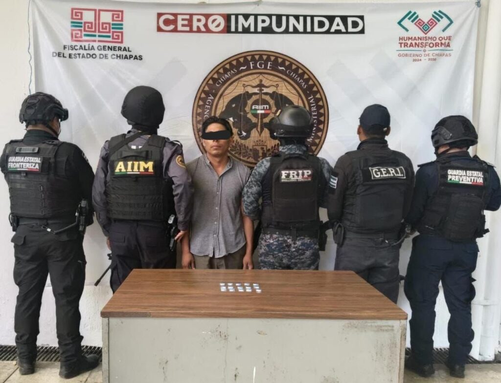 Tapachula, Chiapas; 17 de febrero de 2026.— Un hombre de nacionalidad guatemalteca fue detenido en flagrancia en posesión de 15 bolsitas con presunta metanfetamina durante un operativo de vigilancia en la región Costa.