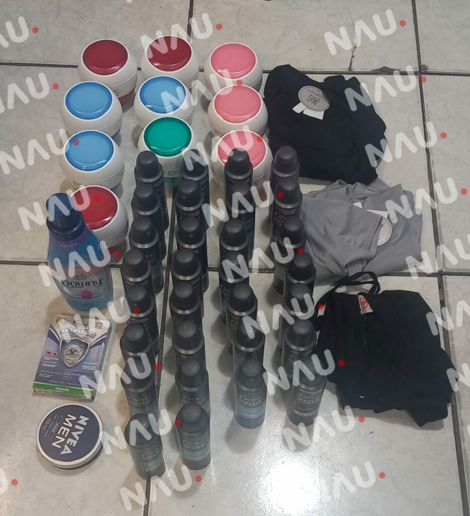 Esta persona se había apoderado de 10 cremas de la marca Pons de 400 G, 30 desodorantes en aerosol para caballero de la marca Dove de 89 gramos, una botella de suavizante para ropa de la marca Downie de 600 mg, una lata de crema para caballero de la marca Nivea de 150 ML, un collar antipulgas para gatos de la marca fancy pets, tres prendas de vestir para dama.