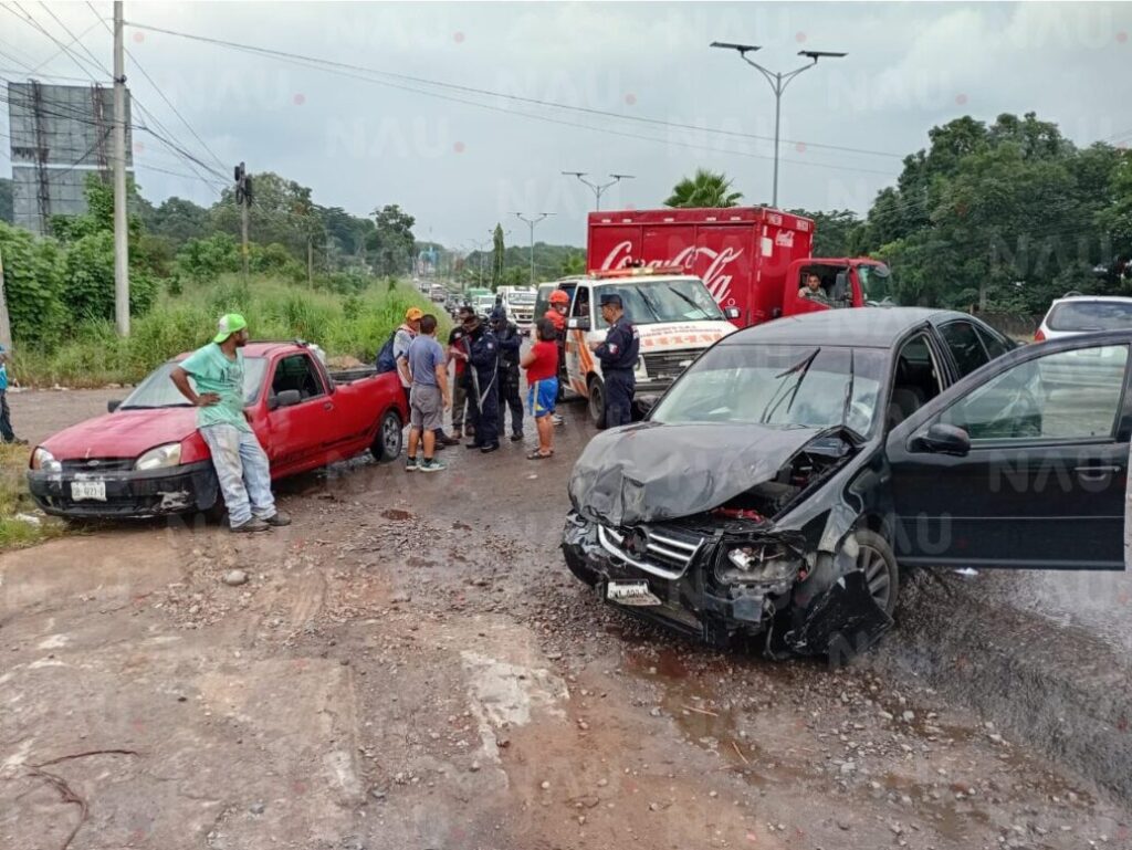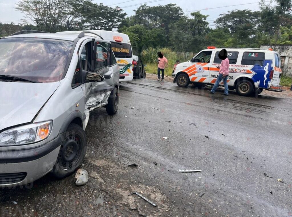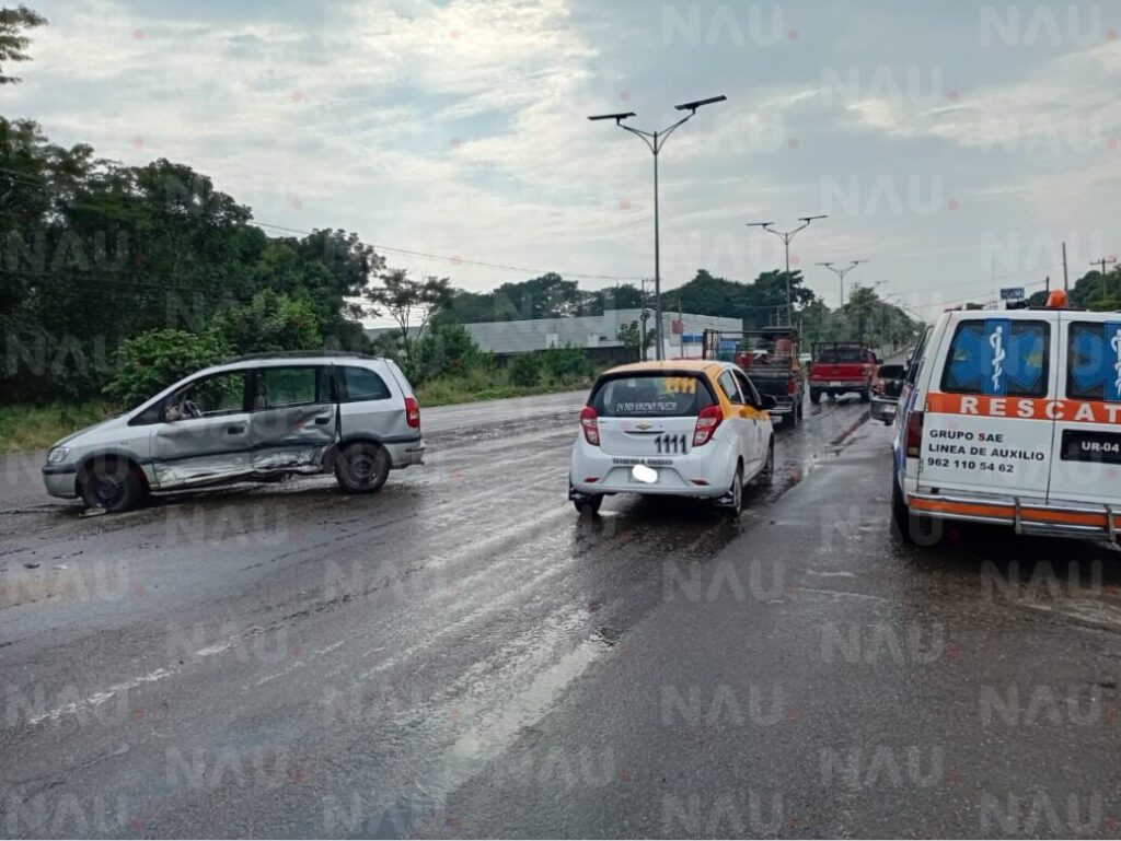Tapachula, Chiapas; miércoles 5 de noviembre de 2025. — Dos personas resultaron lesionadas la tarde de este miércoles luego de un accidente vehicular ocurrido sobre la carretera Tapachula–Viva México, cuando un automóvil particular realizó un corte de circulación, provocando un choque entre unidades.