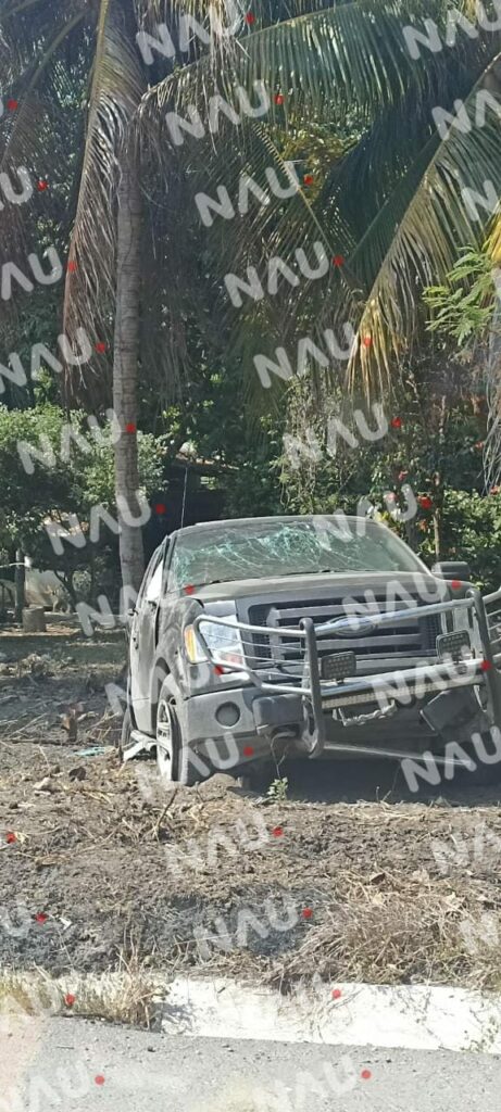 Fuera de la carretera se encontraba una camioneta Marca Ford Tipo Lobo de color negro, sin placas de circulación, Conducido por Everto Antonio N de 42 años, mexicano, Quien fue trasladado a una clínica por sus familiares.