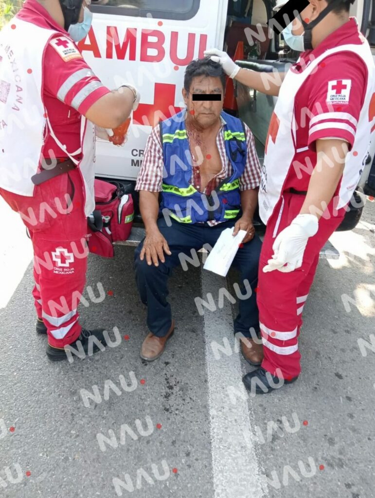 Elementos de la cruz roja mexicana, acudieron al lugar, donde atendieron a una persona que conducía el vehículo Marca Chevrolet tipo Pick Up de color blanca, placas de Chiapas, conducido por el C. Emiliano N. de 59 años, mexicano. Tras ser valorado quedó en el lugar debido a que las lesiones no eran de gravedad.