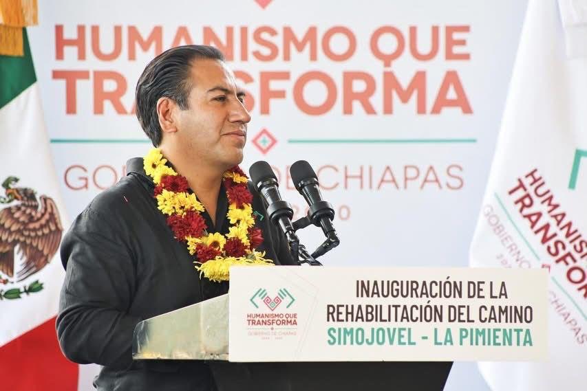 En Simojovel, visitó la localidad Pauchil Dos Los Cocos, donde entregó la rehabilitación del camino Simojovel-La Pimienta, con una inversión de 11.5 millones de pesos en beneficio de 18 mil habitantes. Posteriormente, inauguró el camino E.C (Simojovel-Pueblo Nuevo-Sitalá)-San Francisco Portugal-El Jardín, en el que se destinaron más de 14.6 millones de pesos a favor de 19 mil habitantes, así como el tramo E.C. (Simojovel-Pueblo Nuevo-Sitalá)-Chalchihuitán, que representó una inversión de 11.3 millones de pesos en beneficio de más de 25 mil personas.