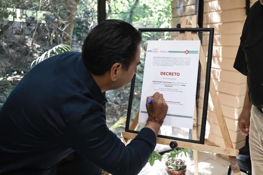 El gobernador Eduardo Ramírez Aguilar encabezó la firma del Decreto de Declaratoria de Área Natural Protegida (ANP), con la categoría de Zona Sujeta a Conservación Ecológica, para 463.82 hectáreas de la superficie denominada “Mina Banderas”, en el municipio de Pantepec. Destacó que el gobierno de la Nueva ERA mantiene una firme vocación ambientalista, impulsando acciones de preservación, restauración y cuidado de los ecosistemas de Chiapas.