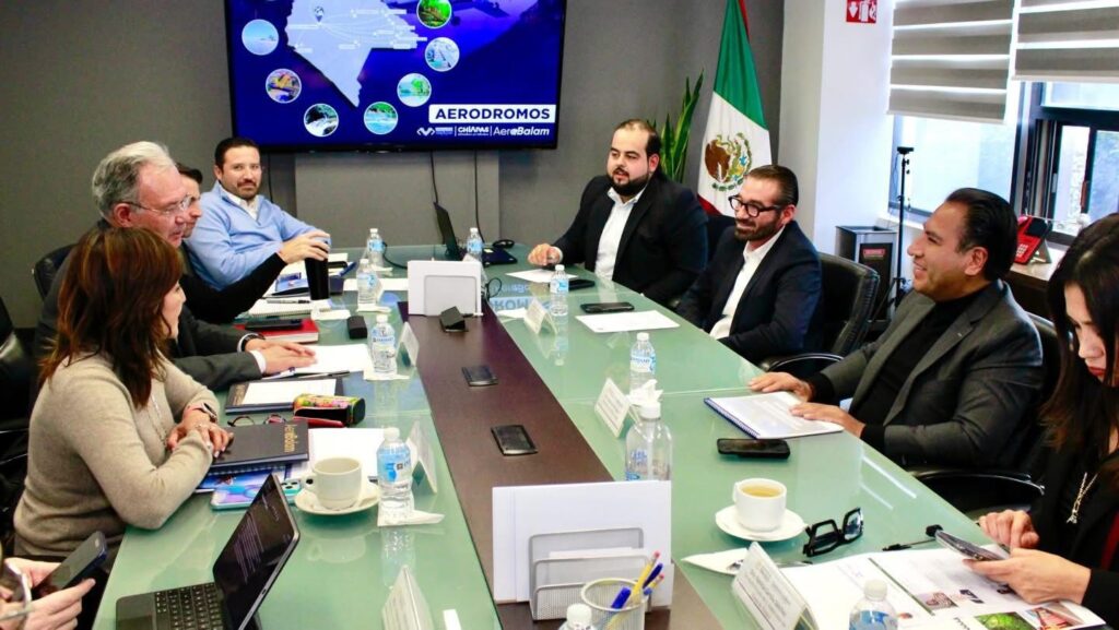 El gobernador Eduardo Ramírez Aguilar sostuvo una reunión de trabajo con la subsecretaria de Transportes de la Secretaría de Infraestructura, Comunicaciones y Transportes (SICT) del Gobierno de México, Tania Carro Toledo, así como con el general Emilio Avendaño García, director general de la Agencia Federal de Aviación Civil (AFAC), para dialogar sobre las ventajas y alcances de AeroBalam, la tour operadora turística aérea del Gobierno de Chiapas.
