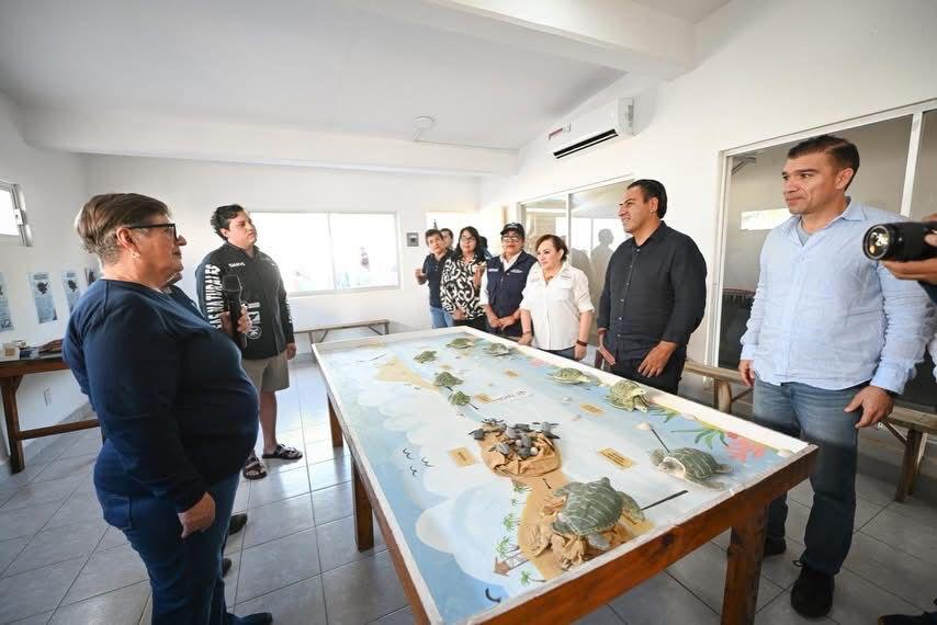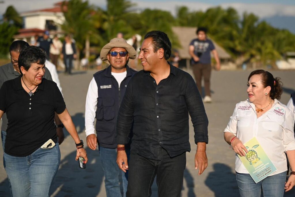 En el marco de esta actividad, el mandatario realizó un recorrido por el Campamento Tortuguero, durante el cual anunció que su administración fortalecerá de manera integral la infraestructura y el equipamiento del sitio, además de dotarlo de material didáctico.