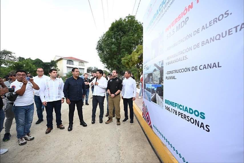 En este municipio, el mandatario colocó la primera piedra del Centro Regional de Protección Civil, una obra que incrementará la capacidad de respuesta ante emergencias y desastres naturales, y entregó la rehabilitación del puente vehicular del barrio El XXV, con lo que se refuerza la seguridad vial y se mitigan riesgos de inundaciones.