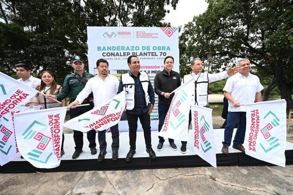 Como parte de las acciones de modernización educativa, dio el banderazo de inicio a las obras en el Conalep Plantel 70 y en el Jardín de Niñas y Niños Octavio Paz Lozano; además, inauguró nuevos espacios en la Secundaria del Estado, la Secundaria Josefina García, la Preparatoria Comitán y el Cobach Plantel 10. En este marco, reafirmó su compromiso de ofrecer entornos escolares dignos y seguros que favorezcan el aprendizaje de la niñez y la juventud.