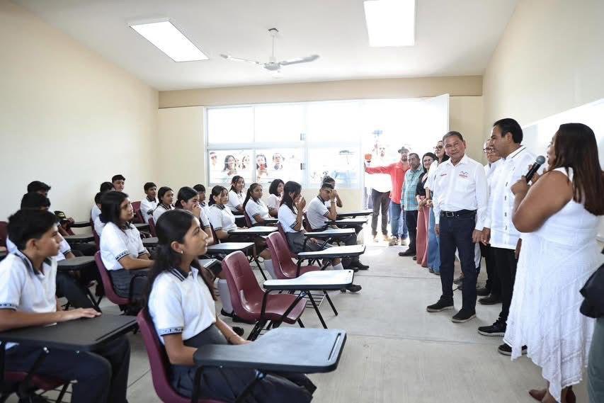 La directora de la Escuela Secundaria Técnica Número 72, Elizabeth Ríos, expresó su agradecimiento al gobernador por la construcción de las nuevas aulas, las cuales representan mejores oportunidades de desarrollo y condiciones educativas para las y los estudiantes. Reconoció la disposición del gobierno del estado para atender la gestión realizada y afirmó que estas acciones reflejan el enfoque humanista de la Nueva ERA en beneficio de la comunidad estudiantil.