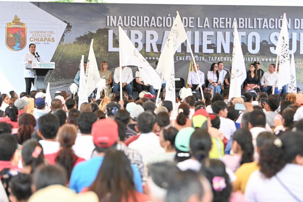El gobernador Eduardo Ramírez Aguilar inauguró los trabajos de rehabilitación del Libramiento Sur de Tapachula, obra que representó una inversión superior a 74.5 millones pesos y beneficia de manera directa a más de 421 mil habitantes. Destacó que esta acción forma parte del proyecto de modernización de dos mil kilómetros de carreteras estatales que impulsa el gobierno de la Nueva ERA, con el objetivo de fortalecer la conectividad y dinamizar las actividades sociales, comerciales y turísticas en las distintas regiones de Chiapas.