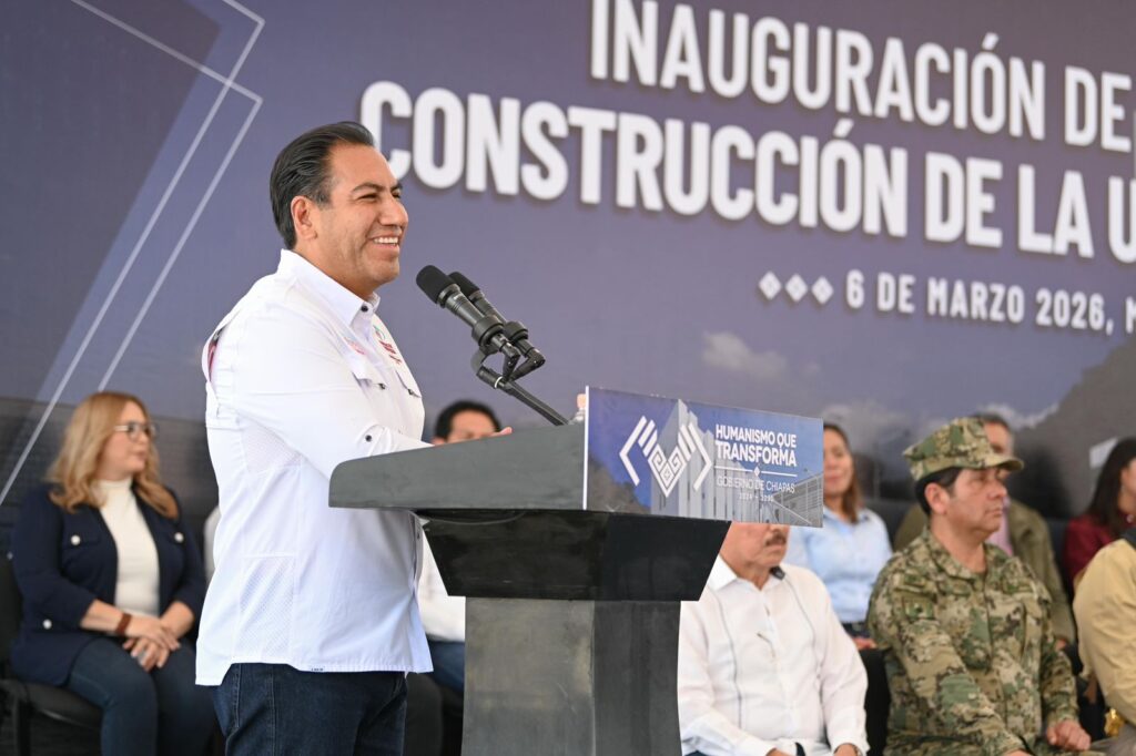 El gobernador Eduardo Ramírez Aguilar inauguró la primera etapa de la construcción de la Unidad Administrativa en el municipio de Motozintla, una infraestructura moderna que albergará de manera digna y funcional a la Fiscalía de Distrito Sierra Mariscal y a la Secretaría de Seguridad del Pueblo. Este espacio permitirá fortalecer la gobernabilidad y el Estado de derecho, además de agilizar la atención de las necesidades de la región Sierra Mariscal.