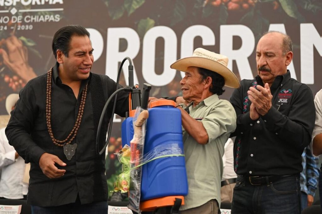El director general del Instituto del Café, Jorge Baldemar Utrilla Robles, resaltó que el programa Café con Humanismo es una iniciativa clave para fortalecer la productividad y el bienestar de las familias cafetaleras de Chiapas. En ese sentido, anunció la entrega en todo el estado de más de seis millones de plantas de café, junto con despulpadoras, herramientas y acciones de capacitación orientadas a optimizar los procesos productivos y posicionar el café chiapaneco en mercados de mayor valor.