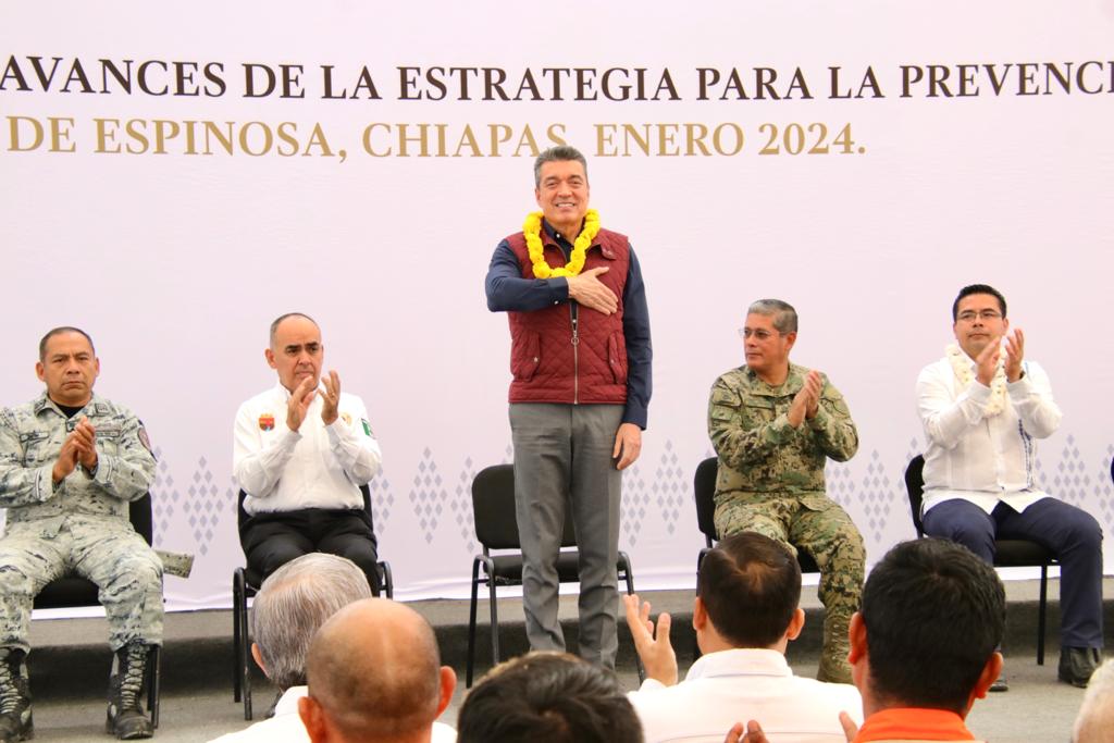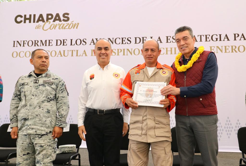 Al encabezar la inauguración de las instalaciones de la Secretaría de Protección Civil del municipio de Ocozocoautla y la presentación del informe de avances de la Estrategia para la Prevención y Combate de Incendios 2024, el gobernador Rutilio Escandón Cadenas informó que, gracias al esfuerzo interinstitucional y a la labor comunitaria de la población, a cinco años de este gobierno Chiapas ha bajado la cantidad de incendios forestales, pasando del primero al séptimo lugar a nivel nacional.