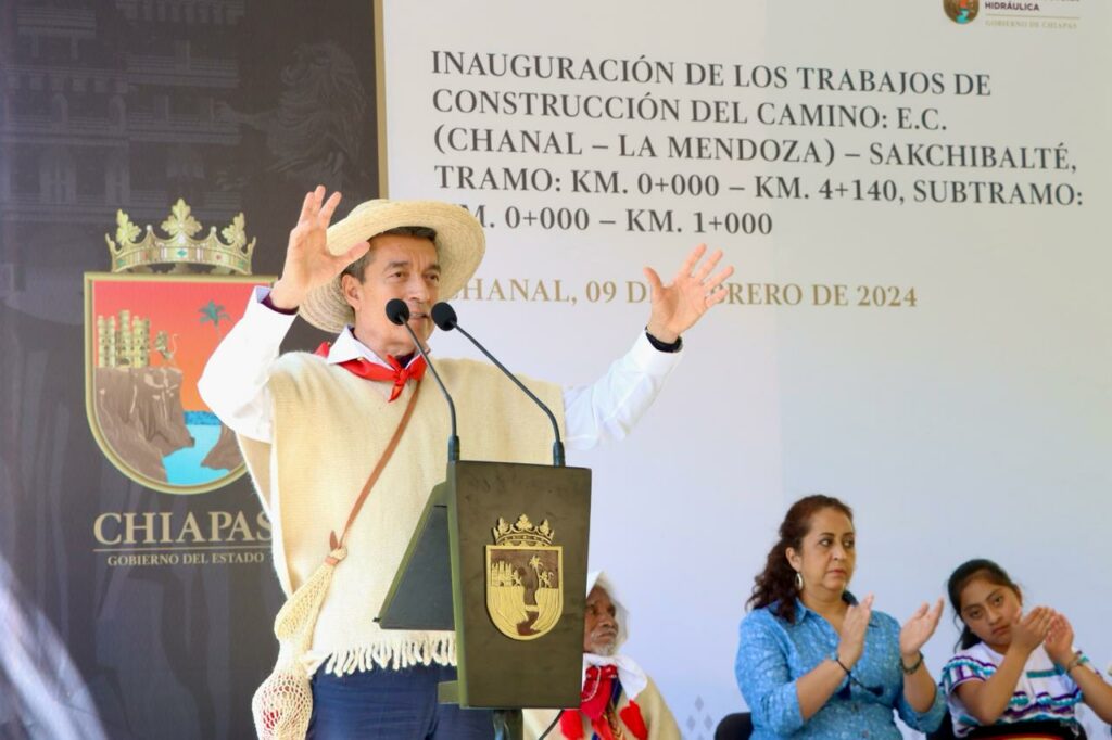 Durante la inauguración de la construcción del camino Chanal-La Mendoza-Sakchibalte, en el municipio de Chanal, el gobernador Rutilio Escandón Cadenas sostuvo que el Gobierno de la Cuarta Transformación impulsa obras prioritarias y de alto impacto social, que abonan al bienestar, al progreso y al crecimiento del índice de desarrollo humano de los pueblos originarios.