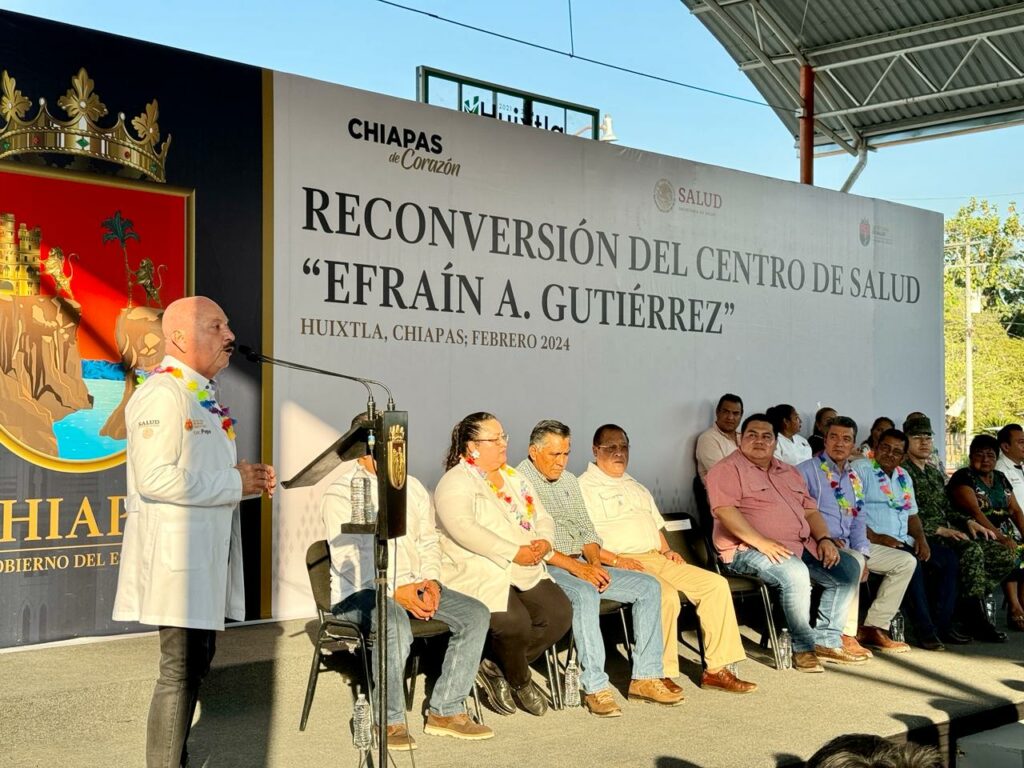 En la inauguración de la reconversión del Centro de Salud del ejido Efraín A. Gutiérrez, en el municipio de Huixtla, el gobernador Rutilio Escandón Cadenas sostuvo que en Chiapas no se escatiman recursos para garantizar que las unidades médicas, tanto en las zonas urbanas como rurales, cuenten con espacios modernos, equipamiento a la vanguardia, medicinas e insumos, además de personal para garantizar atención médica digna y de calidad a la población.