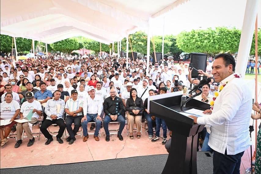 Posteriormente, encabezó el banderazo de rehabilitación del camino Ángel Albino Corzo–Siltepec con una inversión superior a 15 millones de pesos. Además, anunció que el próximo año se implementará un seguro para el café, el ganado y los caminos, con el fin de proteger la producción y el patrimonio de las y los chiapanecos ante las lluvias.