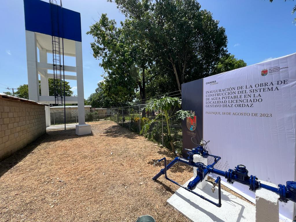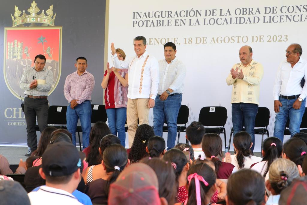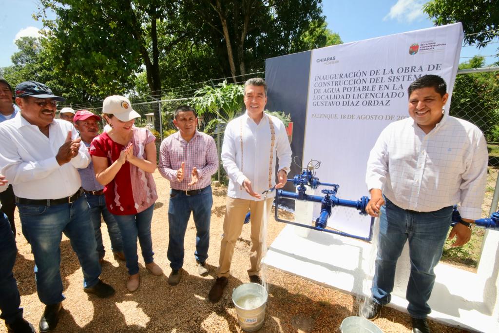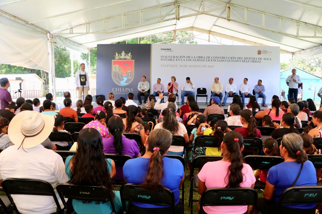 En Palenque, el gobernador Rutilio Escandón Cadenas inauguró la construcción del Sistema de Agua Potable de la localidad Gustavo Díaz Ordaz, donde destacó que el Gobierno de la Cuarta Transformación invierte los recursos públicos para hacer justicia social, a través de la consolidación de este tipo de proyectos que garantizan a la población el derecho humano de acceso al agua limpia y abundante.