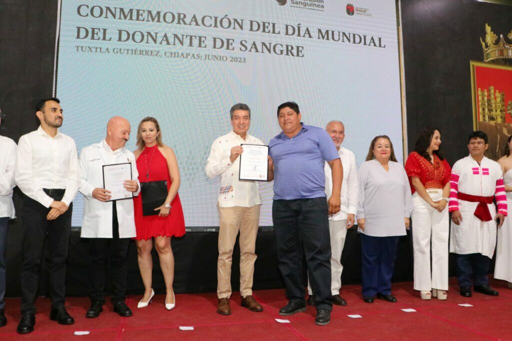 En el marco de la conmemoración al Día Mundial de las y los Donantes de Sangre, cuya sede nacional fue la capital de Chiapas y en este año lleva como lema “La donación de sangre es un acto de generosidad que da vida, permite lograr sueños y cuidar familias”, el gobernador Rutilio Escandón Cadenas reconoció a las ciudadanas y los ciudadanos que de manera permanente dan vida a la humanidad, a través de la donación voluntaria de sangre.