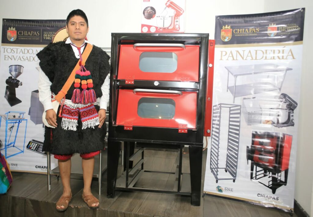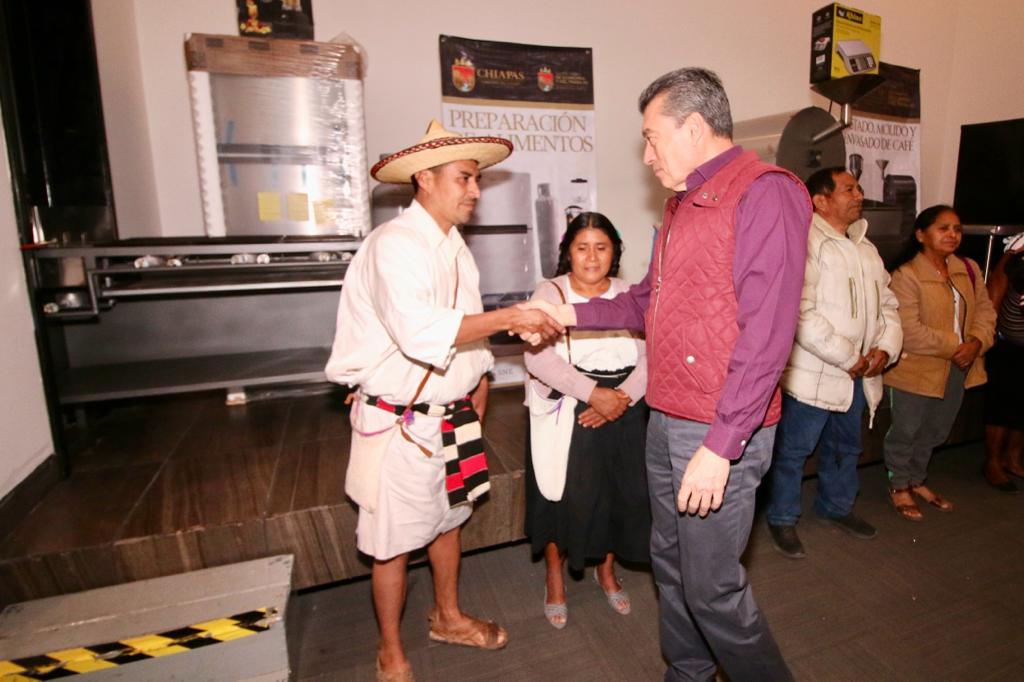 A la par, se entregaron 43 apoyos en equipamiento productivo para el autoempleo con una inversión de más de 1.6 millones de pesos, en beneficio de 69 personas de Chanal, Chamula, Santiago El Pinar, Zinacantán y San Cristóbal, en los rubros de: preparación de alimentos, panadería, repostería, costura y confección, manicure y pedicure, electricidad, estilismo, así como tostado, molido y envasado de café.