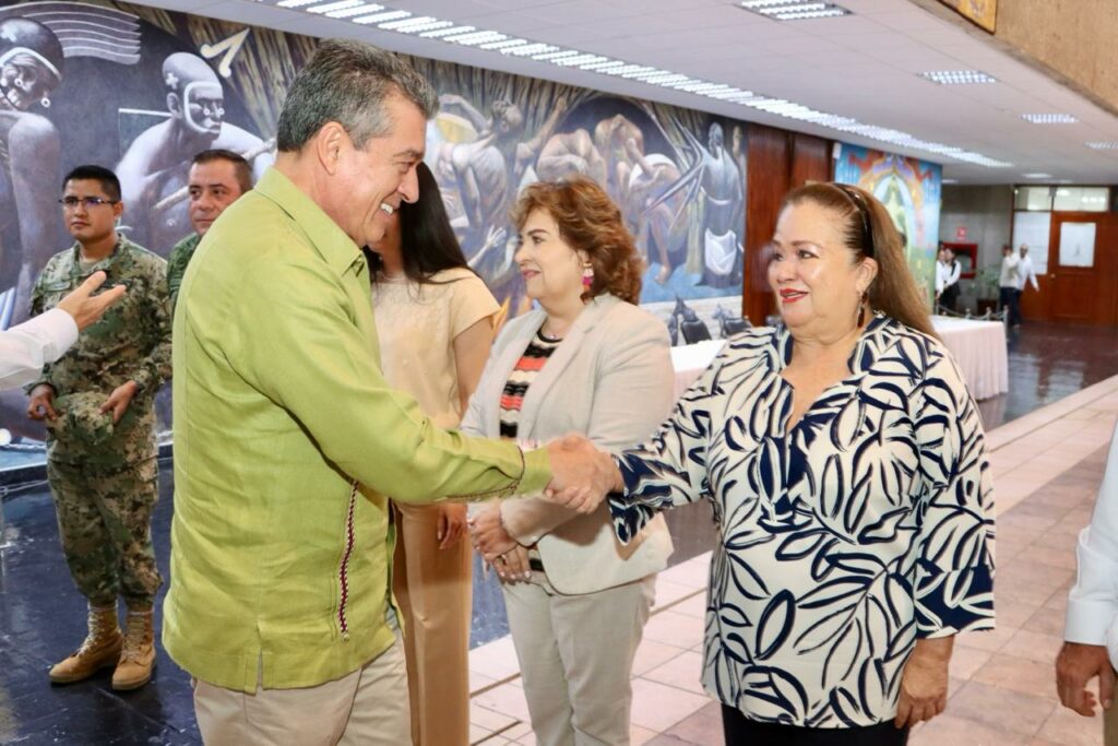 Asistieron: el presidente del Poder Judicial del Estado, Guillermo Ramos Pérez; por parte del Congreso del Estado, las diputadas presidenta de la Mesa Directiva, Sonia Catalina Álvarez; la presidenta de la Junta de Coordinación Política, Flor Esponda Torres, y la presidenta de la Comisión de Derechos Humanos, Citlaty Isabel de León Villard; así como la secretaria general del Gobierno, Victoria Cecilia Flores Pérez.